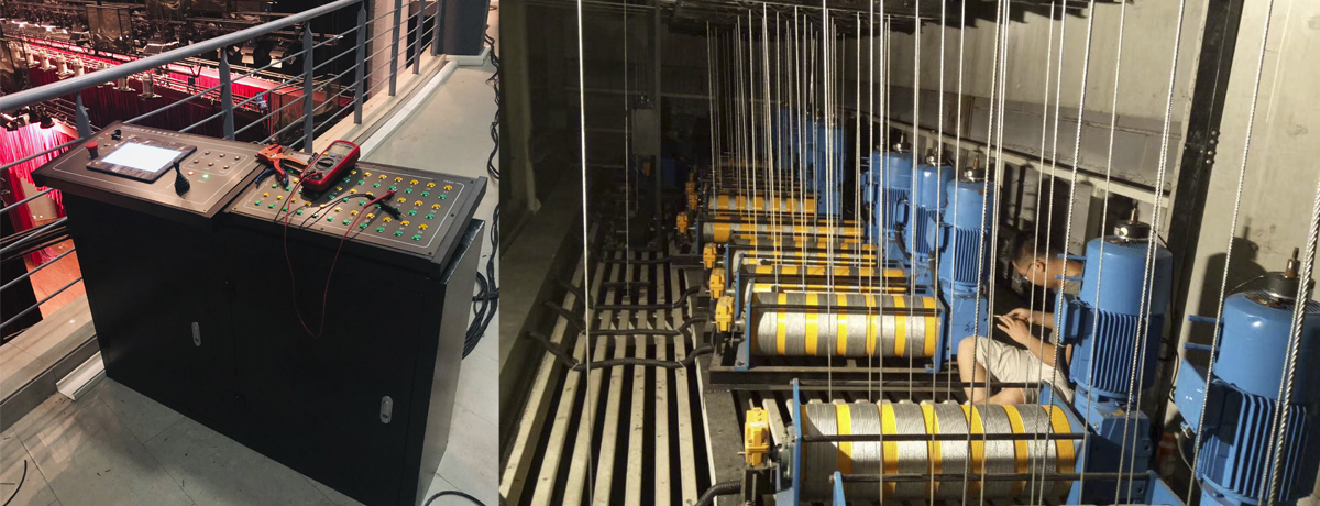 上海古權(quán)電子科技有限公司為此次改造提供了所有設(shè)備及全程安裝調(diào)試服務(wù)。更換了電動景幕升降系統(tǒng)及電動燈光升降系統(tǒng)共計16套,主要包含電動吊桿機、支點滑輪、轉(zhuǎn)向滑輪組、限位裝置、鋼絲繩和舞臺機械控制系統(tǒng)。嚴格按照規(guī)范進行施工,滿足使用方的要求。設(shè)備安裝配線準確、可靠。經(jīng)過設(shè)備的信號測試,單機負載能力、整體組合能力均達到要求,穩(wěn)定性、安全性、控制指令響應(yīng)性均達到要求。各電氣線路間經(jīng)絕緣電阻試驗均合格,線槽敷設(shè)連接緊密,接口光滑,導(dǎo)線敷設(shè)線整齊,有標識。設(shè)備安裝牢固,滿足使用需求。本工程嚴格按照合同約定的預(yù)算進行控制,完成合同約定的全部內(nèi)容。實施的全過程嚴格執(zhí)行國家的安全生產(chǎn)規(guī)定,履行各項安全生產(chǎn)的規(guī)章制度,達到了合同約定的安全生產(chǎn)目標,全過程無安全生產(chǎn)事故。