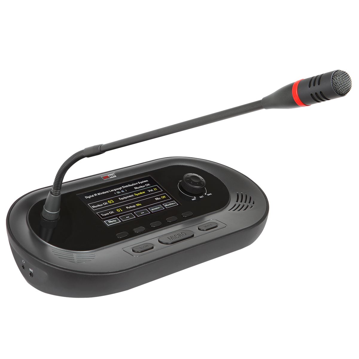 由同傳中央控制器、紅外發(fā)射主機(jī)、紅外發(fā)射板、譯員機(jī)、同傳翻譯間、同傳耳機(jī)(代表接收單元)等構(gòu)成。譯員機(jī)和翻譯間的個(gè)數(shù)將根據(jù)會議語言數(shù)來定。同傳耳機(jī)(代表接收單元)根據(jù)參會人數(shù)來定。